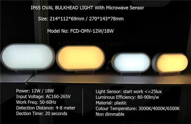 12W IP65 Oval White Bulkhead Lights with Microwave Sensor Wall or Ceiling lamp